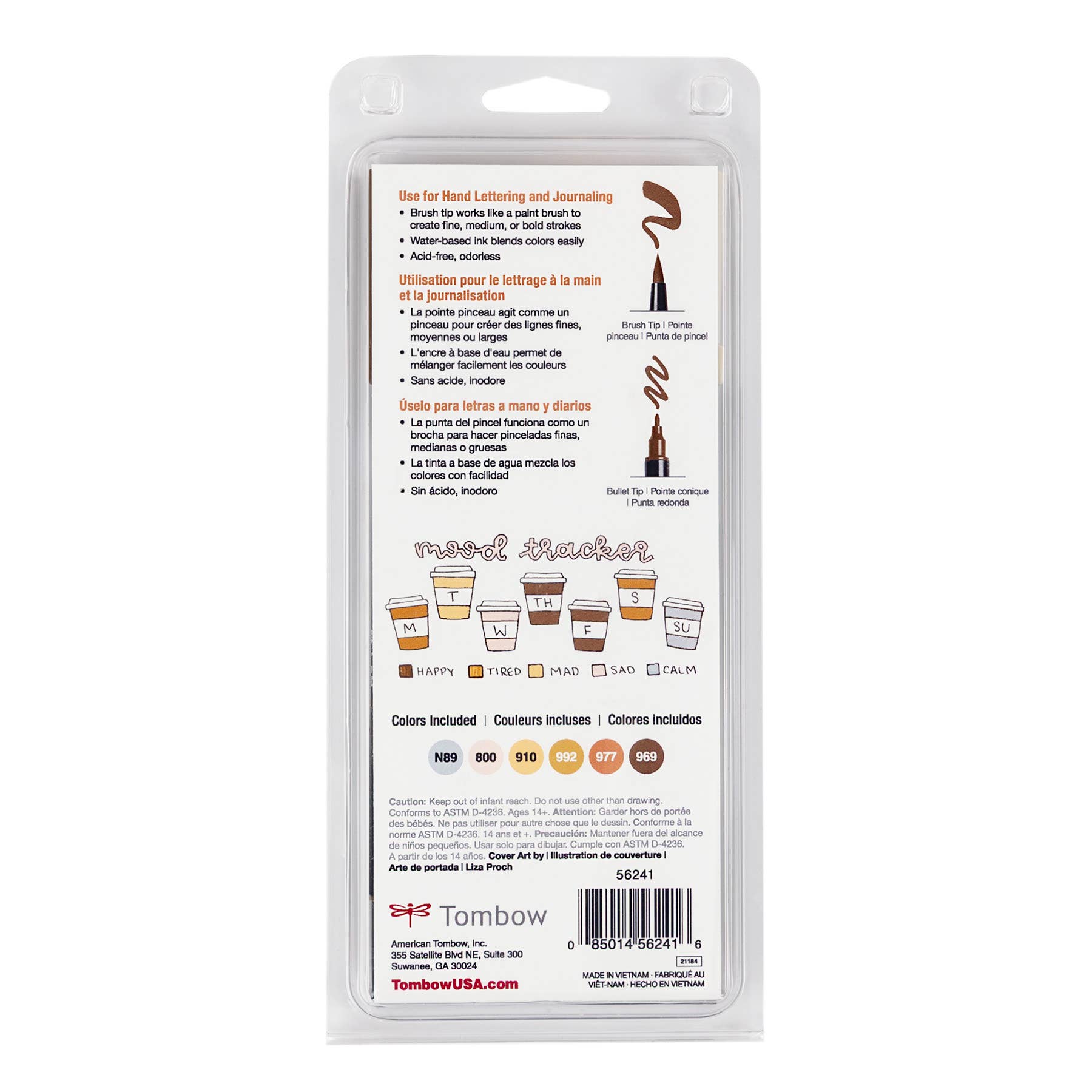 Set of 6 colors. Dual Brush Pens feature a flexible brush tip and a fine tip in one marker. The brush tip works like a paintbrush to create fine, medium, or bold strokes, while the fine tip provides consistent lines. The Coffee Break palette is inspired by rich coffee tones and warm neutrals, perfect for cozy and inviting designs. The water-based ink is blendable, and the resilient nylon brush retains its point stroke after stroke. Colors include: Chocolate (969), Saddle Brown (977), Sand (992), Opal (910), Warm Gray 1 (N89), Pale Pink (800)