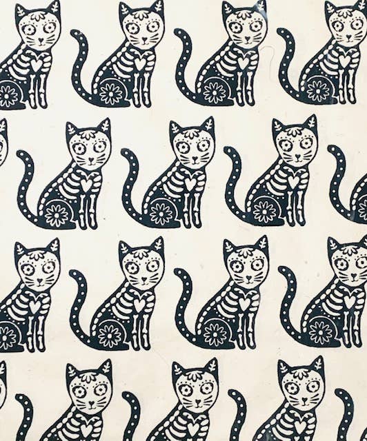 Experience the charm of handmade eco-friendly decorative papers with Giftsland's GSP605-01, a 20x30 flat wrap featuring a unique skeleton cat design in a striking black on cream color scheme. Crafted from the bark of the Daphne plant, locally known as Lokta, this paper not only looks good, but also contributes to the plant's regrowth.